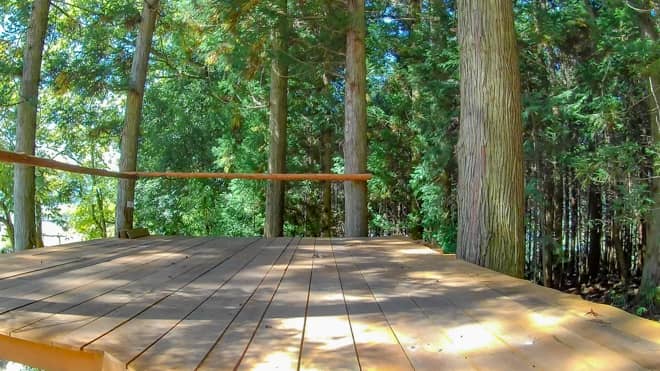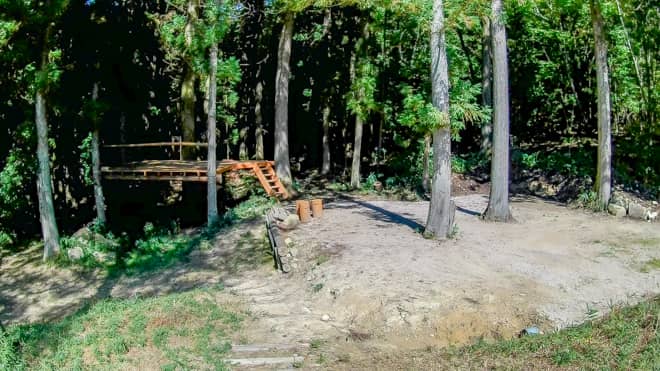 特徴的なのは木々の間に作られたウッドデッキ。木と木の間なので本当に森の中にいる様で雰囲気がとても良い。そして他のサイトより高い場所にあるので、一番プライベート感が保たれるサイトです。