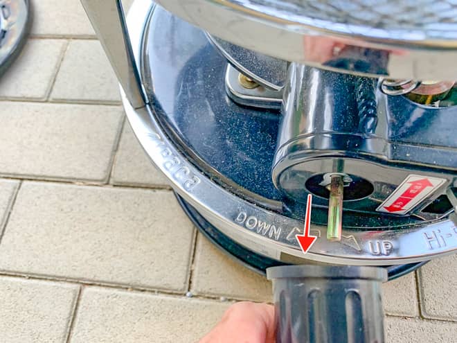 芯を取り付けたら、芯調整ノブを回して芯の出具合を確認します。耐震自動消火装置が邪魔をして、芯を出すのも一苦労でした。