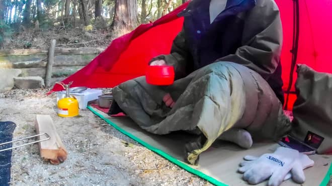 徒歩キャンプやバックパックキャンプをする方であれば、チェアを持ち込まずに地べたに座る事が多いと思います。冬は焚き火をしても足元は寒いので使い捨てカイロを貼ったり靴下を二重にしていますが、それでも足元は冷える。