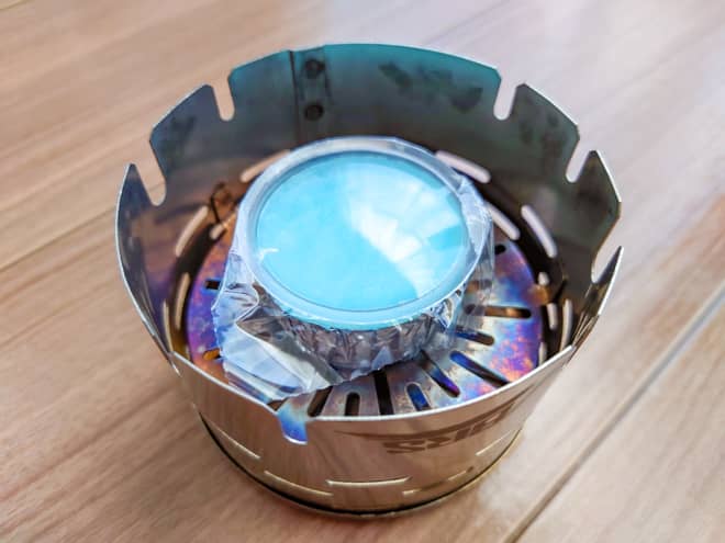 また、筆者はまだ試した事がないのですが、裏返して固形燃料を置くと五徳としても使えるそうです!確かにサイズ的にちょうど良く、スリットが入っているので空気も適度に入るし風防にもなるので丁度良い。一石二鳥ですね。