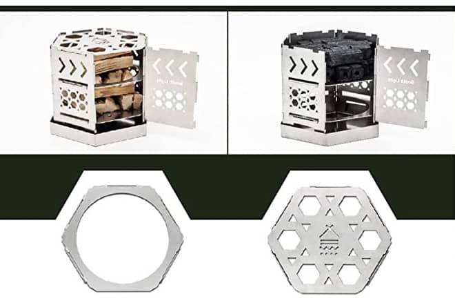 今回の燃料は薪だったので中間部分を入れずに組みましたが、ロストルは下記の用に自由に付け替え可能。