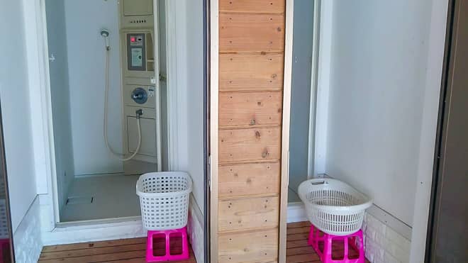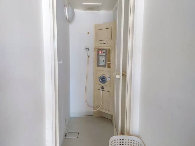 コイン式のシャワーです。こちらも古さが無く、綺麗なので女性でも安心して使用できます。