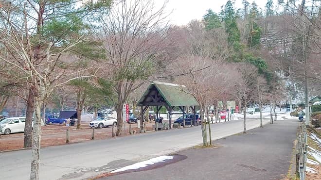 芝生広場を抜けると第三キャンプ場があります。ここは車乗り入れができないので隣の駐車場に停める必要があります。