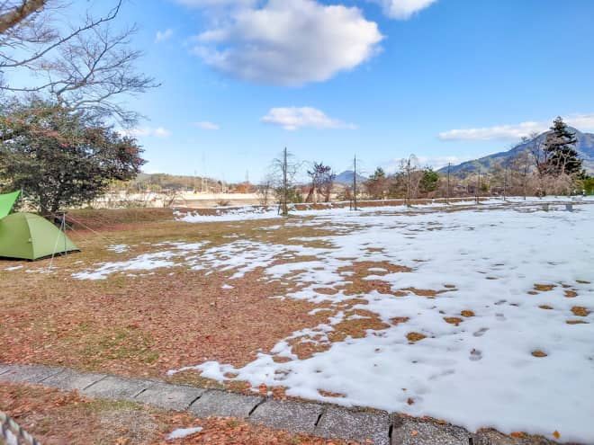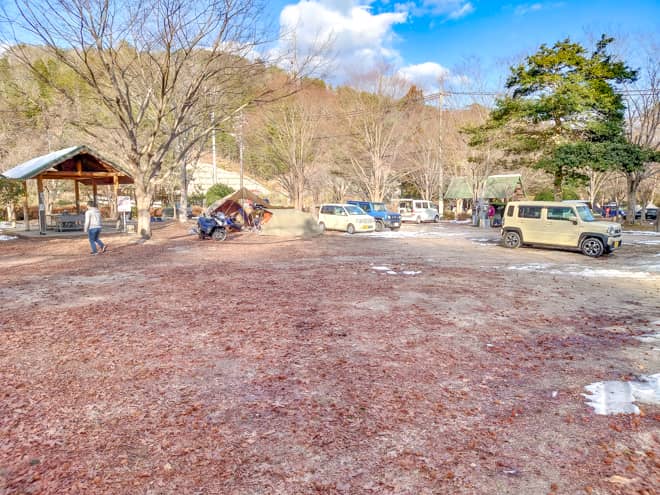 そして区切りの無い完全なフリーサイトなので自分の好きな場所へ自由に設営ができます。先着順なのでGWや夏休みなど人気シーズンの場所取りは大変ですが、筆者が行った年末は設営場所に困る事も無く、適度な人出でした。シーズンさえ外せば快適です。