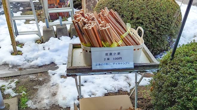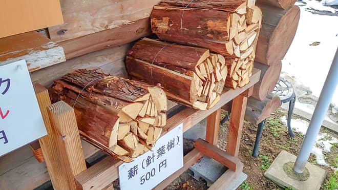 到着したらまずこちらで受付をします。売店はありませんが薪や炭はこちらで販売しています。焚き付け用の細割もあるので助かりました。