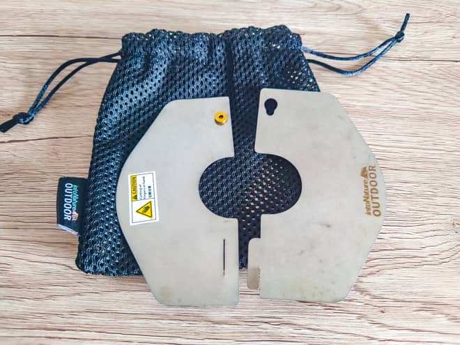 超軽量なので徒歩キャンプや登山など荷物をかなり絞る必要のある方におすすめです。筆者も十分満足しております!しかし、ヒーターアタッチメントや鉄板などを長時間使用する方は、もっと厚みのある遮熱板の方が安心感があると思います。