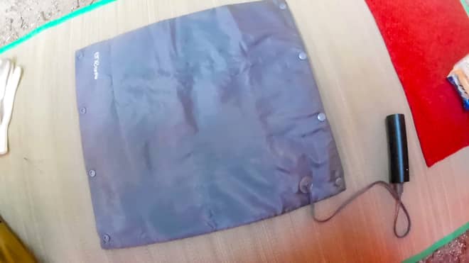 こちらは80gと超軽量!チェアに敷いて座っても良いし、膝に置いてその上からひざ掛けをかけたらポカポカです。軽量コンパクトで良いのですが、こちらも使用する為のモバイルバッテリーが重たいので余裕のある時に持っていきます。