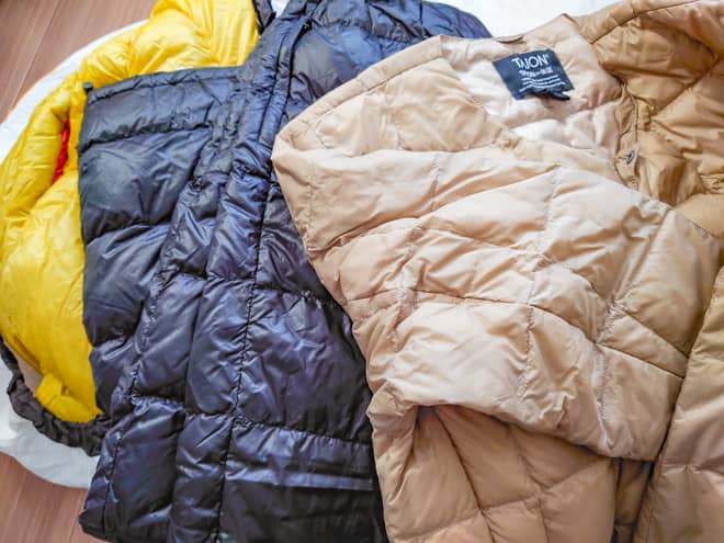 ダウンジャケットを着込む事で寝るときの保温性もアップしますが、活動時の防寒着としても使えるので一石二鳥。ダウンなので寝袋と一緒にザックに圧縮して詰め込む事ができるので、軽量コンパクトな面でも優秀です。