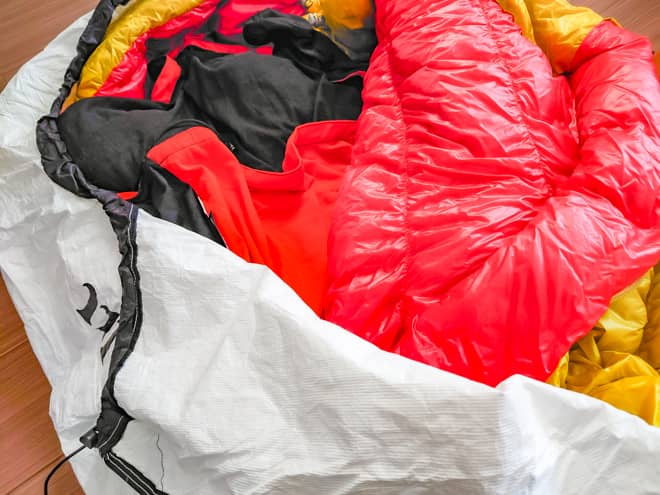以前はシュラフにブランケットを重ねたりしていましたが、重ねなくてもよくなったので軽量化に繋がっています。