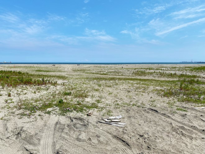 豊岡海岸の砂浜はかなり柔らかく、一般車が海岸に乗り入れをするとスタックする可能性が高いです。スタックしないために一番大切なことは、とにかくスタックしそうな場所には行かないということに尽きますが、スタックしてしまった場合やテント設営時を考慮して、シャベルやスコップを持参しておくと多少は安心です。