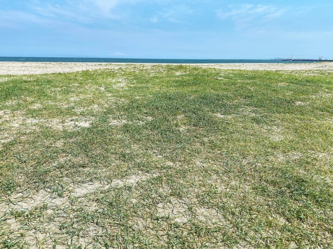 テントが設営しやすい草が生えているエリアは一部しかなく、ほとんどが緩い砂浜となっているので、テントやタープを安定して設営できるようにサンドペグや自立式のテントやタープを用意しておくことをおすすめします。