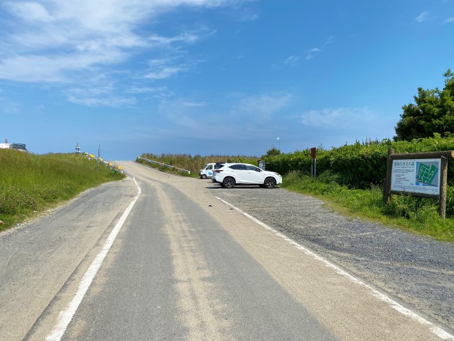 海岸の手前には10台程度が停められる駐車場が有ります。こちらは久慈川河口での釣りをするための釣り人も利用していますので、譲り合って利用するようにしましょう。