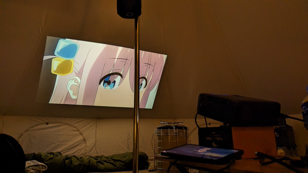 【画像】ヲタキャンパーがソロキャンしながらテントでぼっちざろっくの上映会→外からも丸見えで大迷惑に