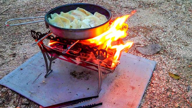 超軽量焚き火台となると扱いにくいものが多いですが、N-projectのネイチャーストーブなら185gと超軽量コンパクトなのに、薪も使用できるので比較的扱いやすい。五徳も付属しているので調理もやり易いです。