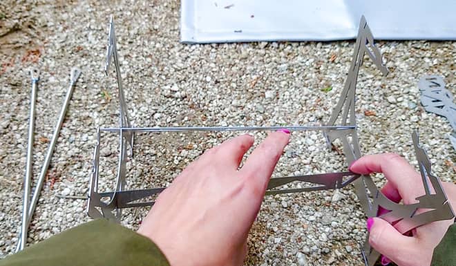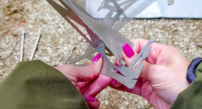 ②火床になるメッシュを4か所の切り込みに挿し込む