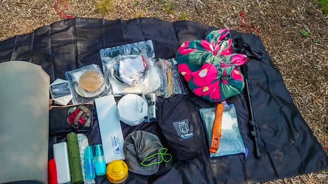 大判サイズであれば急な雨でもバックパックに被せて、ザックカバーとしても使用できます。普通のザックカバーはザックカバーとしてしか使用できませんが、撥水風呂敷なら他の使用用途があるので収納袋や敷物として使用しつつ、万が一の時はザックカバーとして使用できます。