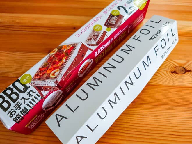 アウトドア用のアルミホイルは厚みがあって使いやすいけど、厚みがある分、少し嵩張って割高。そこで筆者は使用用途によって使い分けます。