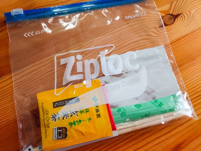 アルミホイルを1本丸ごと持って行くと嵩張ってしまうので、軽量化の意味では本末転倒。UL(ウルトラライト)を実践している方ならお馴染みの方法ですが、必要な分だけカットして折りたたんで持って行きます。筆者の場合はカットした1~2枚をお茶やスープ類と一緒にジップロックに入れています。