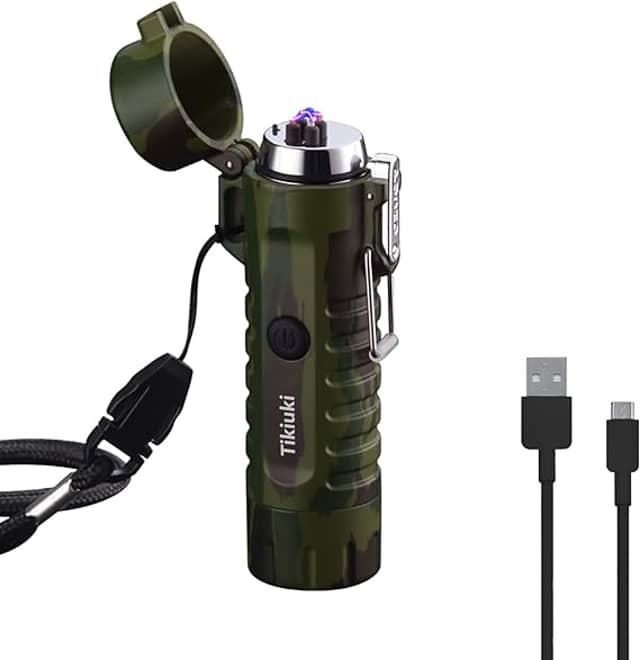 そして製品にもよりますが、こちらのプラズマライターはIP56規格の防水。雨や風にさらされるアウトドア環境でも問題なく使用することができます。おまけにライトも付いているので、一つで二役をこなします。メインはライターとして使用し、ライトの予備にもなるのでひとつ持っていれば安心感がありますね。