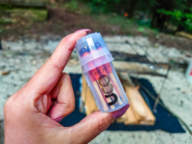 そして、このコンパクトサイズも大きなポイント。普通のマッチと同じサイズなので、付属している気密性の高いケースに百均で購入したマッチがぴったり収まります。キャンプで毎回サバイバルマッチを使うのは勿体ないので、半分は普通のマッチに差し替えて万が一のお守り代わりに常備しています。