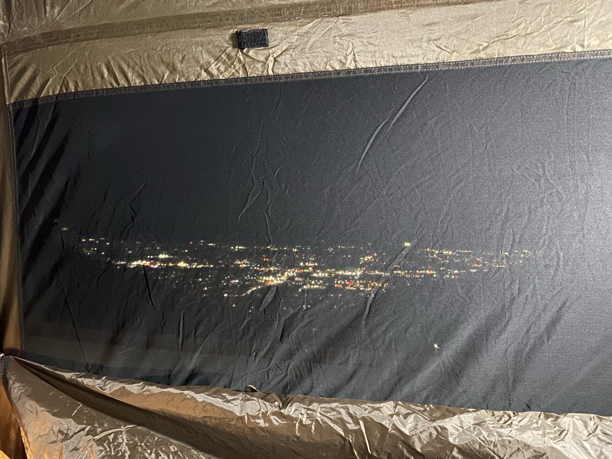 アウトドア仕様になったハイエース。防寒対策もしっかりとしている。ビール片手にぜいたくな景色を楽しんだようだ。イワタニのカセットストーブもあった。