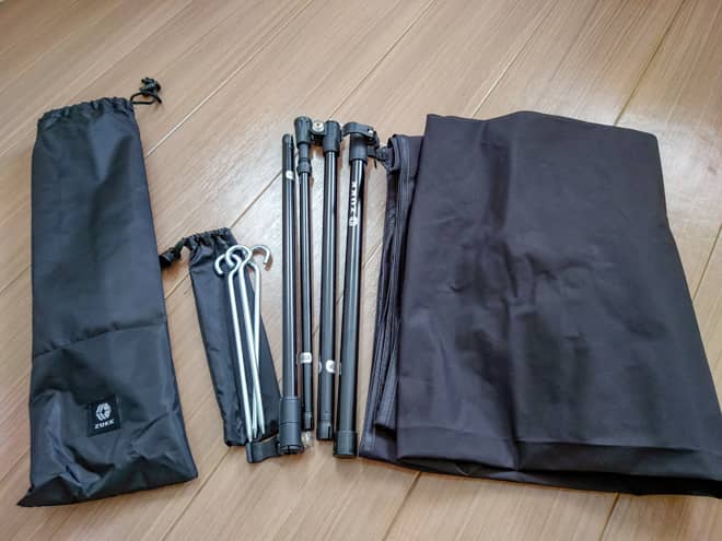 リニューアル前はポールが収納袋に入らなかったそうですが、現在のリニューアル品はポールが4分割になっているので幕本体と一緒に収納袋へ入ります!収納サイズがコンパクトなのでバックパックでも持ち運びがし易いです。