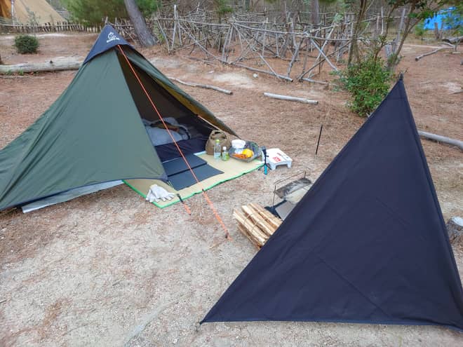 金属製リフレクターの様に反射熱は期待できませんが、高さがあるので風除けには十分。目隠し効果もあるのでソロキャンプでも周りを気にする事なく過ごせます。