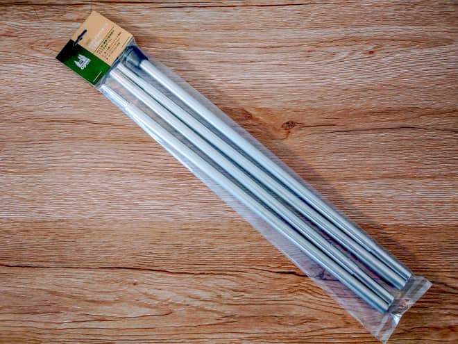 特にオガワのALアップライトポールは90gと超軽量なので、大幅な重量削減になりました。110cm固定なので高さ調節はできませんが、私はHighスタイルで使用したいので問題ありませんでした。収納袋をビニールにすると夜露で濡れても安心なので一石二鳥です。