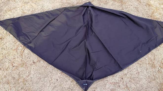 高さを気分によって変えられる2WAY仕様なのはメリットなのですが、上下どちらを頂点にしたらHighなのかLowなのか判別がしづらいです。地面に広げて三角の頂点の角度で判断するのですが、広げないと分からないのでその点は少し面倒。予めカラビナを付けるなど、目印を付けておくとスムーズに設営できます。