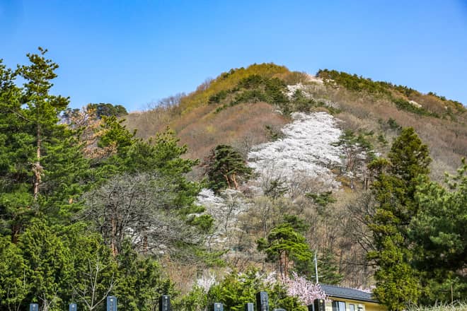 登山口から山頂まで続く約2000本のソメイヨシノの回廊は「登り龍」と呼ばれ、大正天皇の即位を記念して植えられたんだそうです。夜にはライトアップまでされる安曇野屈指のお花見スポットです。