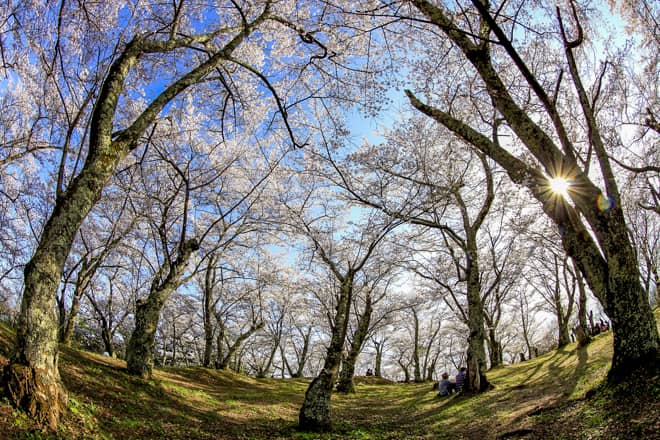 光城山の例年の開花は4月中旬以降。桜が満開のタイミングを狙いたい!