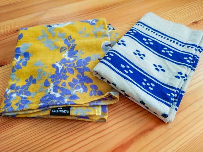 普段なら髪の毛に寝ぐせがついたりボサボサになってもヘアアイロンをかけて伸ばすこともできますが、キャンプでは出来ません。そこで筆者はキャンプの時にはいつも持参している手ぬぐいを頭に被って寝ています。いわゆる「ほっかむり」状態です。