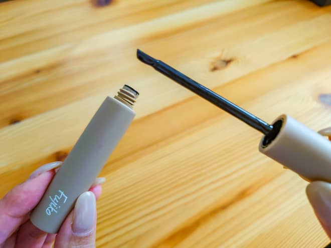 眉ティントは眉に塗って数時間放置すると着色されるので、洗顔をしても汗をかいても数日落ちません。眉メイクが不要になる便利アイテム!狭くて暗いテント内で眉毛を書くと不自然な眉になりがちなので、眉ティントで済ませるくらいが丁度良いです。