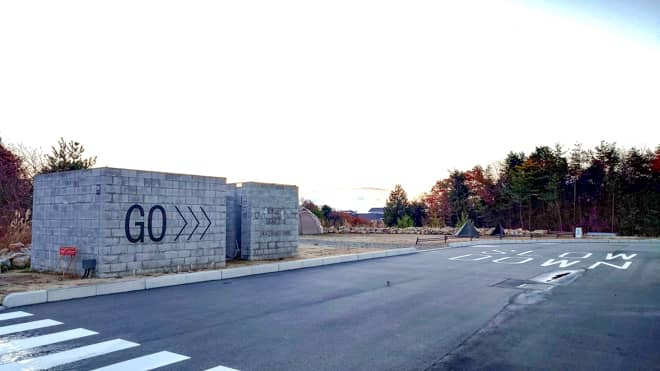 受付棟の横に設置してあります。普段履いてる靴でそのまま使用できるようです。