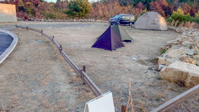 また、キャンプサイトは全部で3区画しかないのでキャンプ場としては小規模。その為、混雑することがないのはかなりの高ポイント。筆者は土日に利用しましたが、筆者の他にファミリーの方が1組だけで広々とキャンプをすることができました。3区画なので3組以上のグループなら貸し切り状態で利用することも出来ちゃいますね!