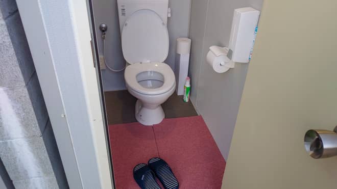 温水洗浄便座ではありませんが、スリッパに履き替えるタイプでとても綺麗にされています。子供や女性キャンパーでも安心して使用できます。