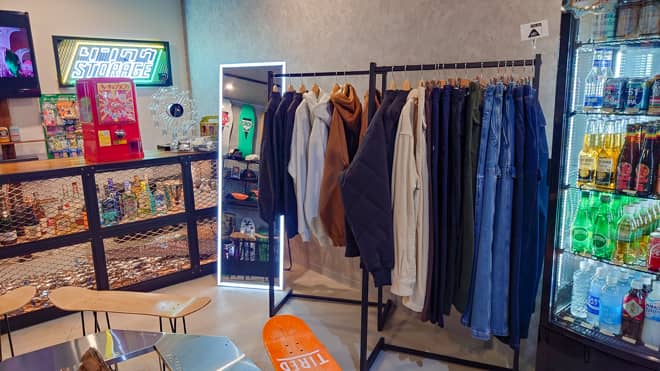 平日は10時~18時、翌日が休日の場合は20時まで開いています。売店ではスケボー関連のアパレル等がメインですが、ドリンク類や薪の販売もしています。こちらのトイレがとても綺麗でドライヤーもありました。受付等が開いている間はキャンプ利用者も自由に利用できます。