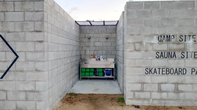 公式HPにて「アーバンスポーツ総合施設」と謳っていることもあり、どこか都会的でオシャレな雰囲気がある施設。炊事棟やトイレなどもコンクリートのブロックが積んであるデザインでキャンプ場とは思えないデザイン。