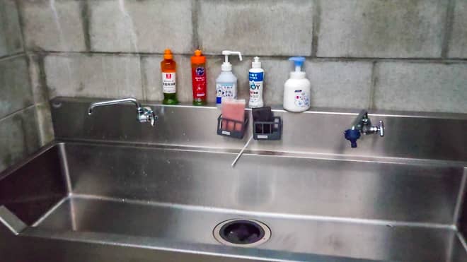 流しのみですがこちらもとても綺麗です。温水はでませんがハンドソープ、食器用洗剤、スポンジも常備してありました。